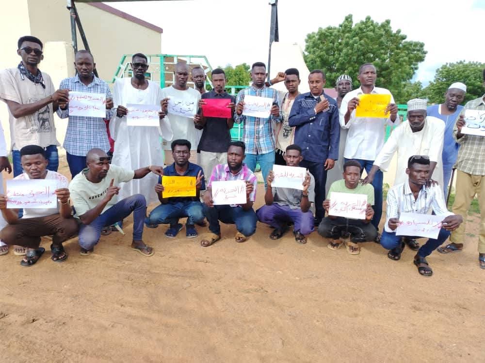 نفذت لجنة مناهضة السيانيد بمحافظة قدير، بولاية جنوب كردفان، وقفة احتجاجية أمام مقر المحافظة في كالوقي، الجمعة 15 أغسطس 2025، تنديدًا باعتقال عضو اللجنة الشيخ أخرش على يد الاستخبارات العسكرية في أبو جبيهة.