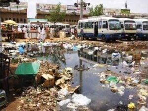 تقول د. فاطمة إدريس، أخصائية صحة عامة، عملت بعدد من المستشفيات، إن تراكم النفايات وركود مياه الأمطار في شوارع المدن وصل إلى مرحلة الإنذار الصحي. فمنذ اندلاع الحرب في أبريل 2023، تراجعت خدمات النظافة إلى مستويات خطيرة؛ إذ أصبح جمع النفايات متقطعًا أو متوقفًا في أحياء واسعة. ومع حلول الخريف انسدت مصارف الأمطار بالطمي والقمامة، فتحولت الطرق والأحياء السكنية إلى برك دائمة.