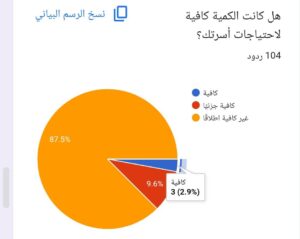 بينما كان لدى العديد من المشاركين ملاحظات تشير إلى ” عدم كفاية المساعدات” أن الكميات الموزعة لم تكن كافية لتلبية الاحتياجات الأساسية، هذه الشكوى تكررت كثيراً، حيث ذكر بعض المشاركين أن الكميات لم تكن تكفي حتى لفرد واحد، فما بالك بأسرة كاملة. وهو ما يعكس فجوة هائلة بين حجم الإغاثة المتاحة والاحتياجات الفعلية للسكان.